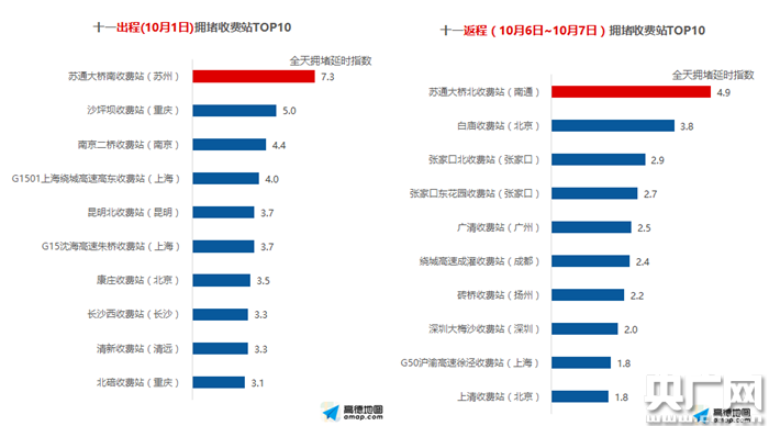 10月1日0點(diǎn)全國(guó)最擁堵收費(fèi)站TOP 10