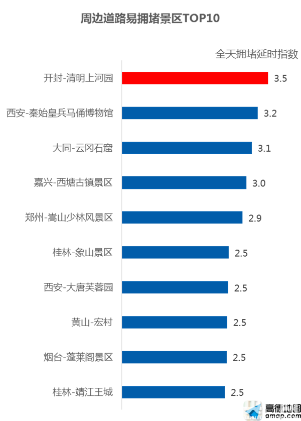 同時(shí),預(yù)計(jì)十一黃金周期間,開封清明上河園周邊道路最為擁堵, 10月2日至7日的8:00~19:00時(shí)段擁堵最為突出。