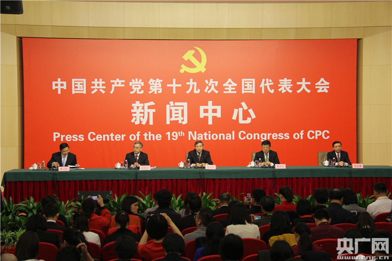10月20日,十九大新聞中心舉行記者會。圖為中宣部副部長孫志軍向與會記者介紹情況。央廣網記者杜靜攝
