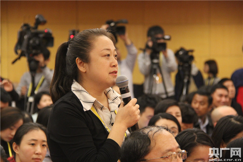 10月20日,十九大新聞中心舉行記者會。圖為中央人民廣播電臺、央廣網記者提問。央廣網記者鞏盼東攝