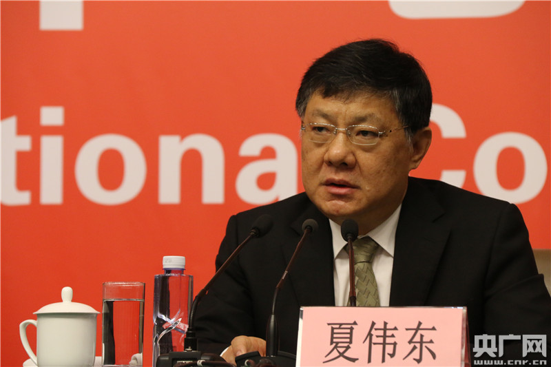10月20日,十九大新聞中心舉行記者會。圖為中央文明辦專職副主任夏偉東向與會記者介紹情況。央廣網記者杜靜攝