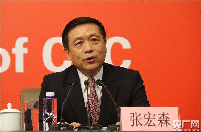 10月20日,十九大新聞中心舉行記者會。圖為新聞出版廣電總局副局長張宏森向與會記者介紹情況。央廣網記者杜靜攝