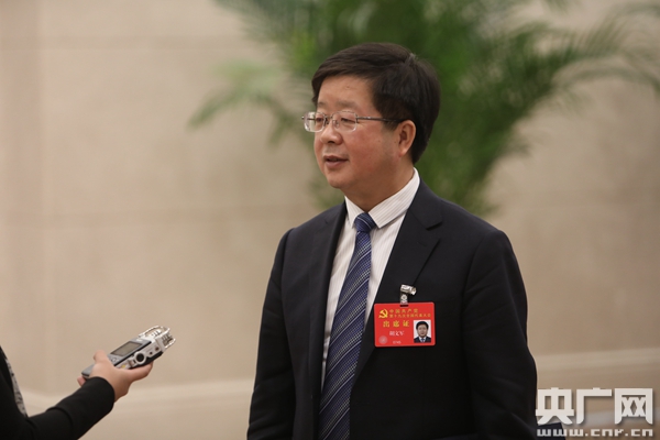 十九大代表、作家凌解放(筆名二月河) 接受央廣記者專訪 央廣網記者 高藝寧 攝