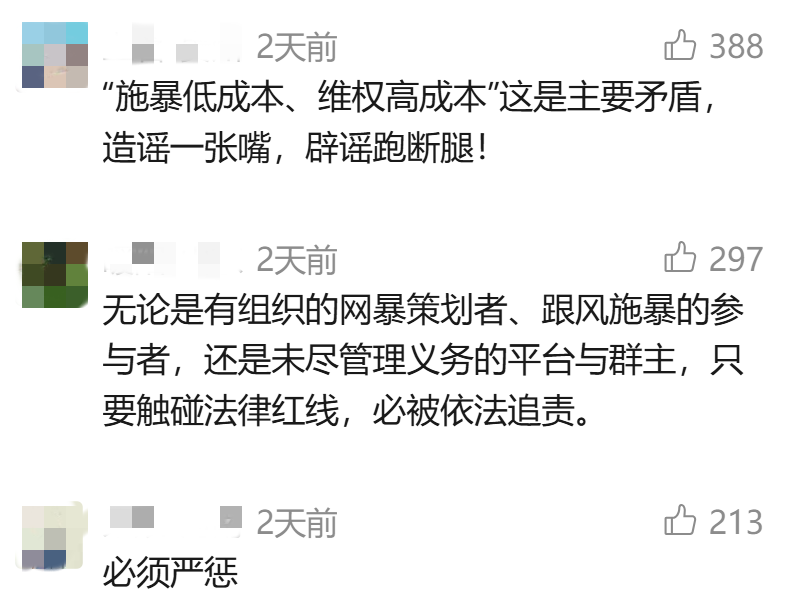 網友強調,“網絡不是法外之地 立法嚴懲!”