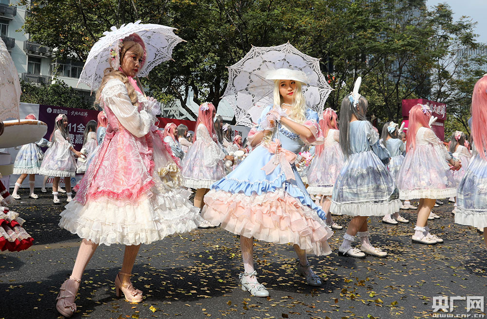 11月10日,“夢幻王國”花車邊穿著“洛麗塔”風(fēng)格服飾的演員在表演(央廣網(wǎng)記者 魏煒 攝)