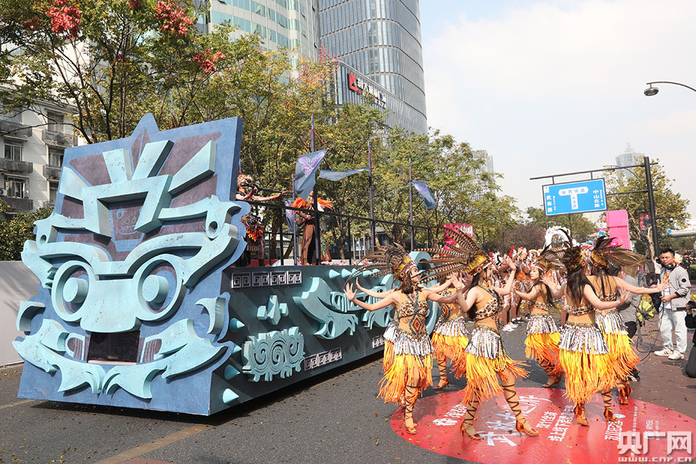 11月10日,舞者在“新消費 醉杭州”花車前表演舞蹈(央廣網(wǎng)記者 魏煒 攝)