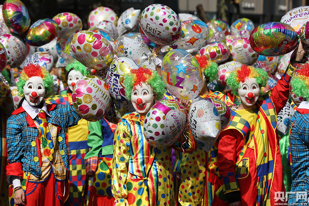 11月10日,太陽馬戲方隊眾多小丑吸引路人(央廣網(wǎng)記者 魏煒 攝)