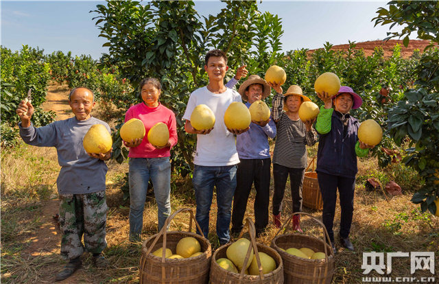 初冬時節,蜜柚飄香。江西省永新縣象形鄉高田村扶貧基地千畝蜜柚已經成熟,滿山柚林掛滿了金黃色的柚子