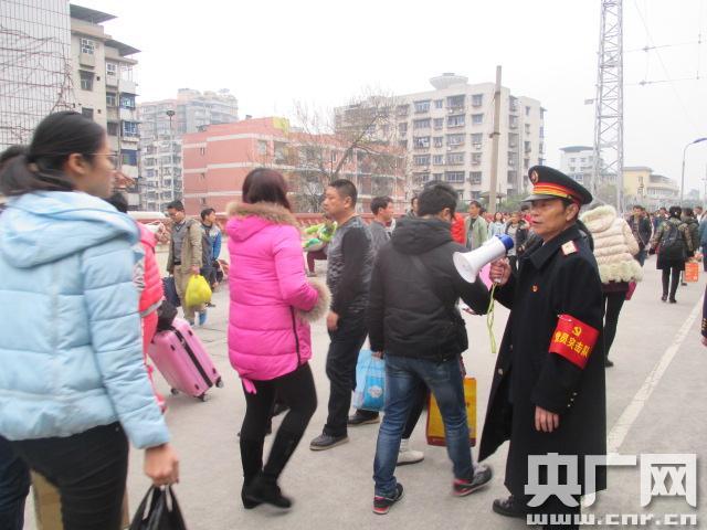 堅守38年 “光榮”的最后一個春運(央廣網發 程禮松攝) “請大家不要擁擠,排好隊進站上車……”2月5日上午,記者見到老唐時,聲音沙啞的他正手持話筒在引導旅客有序排隊。樸素的制服,胸前黨徽格外顯眼,手持對講機隨時聽著對講機那頭傳來的聲音,隨時微笑回答旅客的咨詢。出生在鐵路世家的“光榮”22歲時就從父親手中接過“指揮棒”來到鐵路,先后在襄渝線上的祿市、渠縣、華鎣、三匯壩、磨心坡和川黔線上的珞璜等站工作過,從連接員、扳道員、信號員、值班員、副站長到黨支部書記,行走在襄渝、川黔線38年,擔任黨支部書記20余載。 -