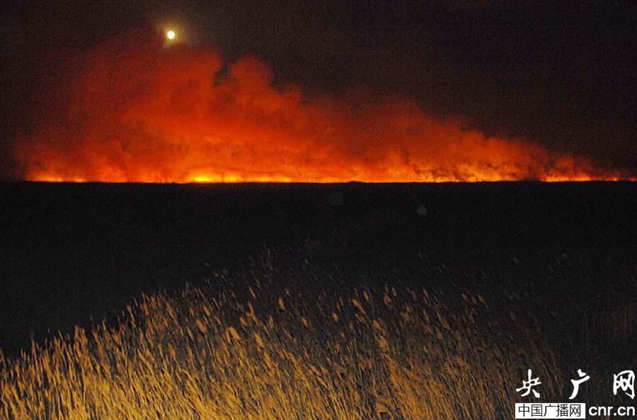 新疆博斯騰湖蘆葦燃起大火(央廣網發 達林塔 攝)