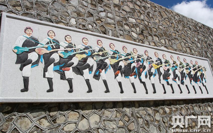 公路邊獨具特色的藏文化元素浮雕(央廣網記者 普布次仁 攝) -