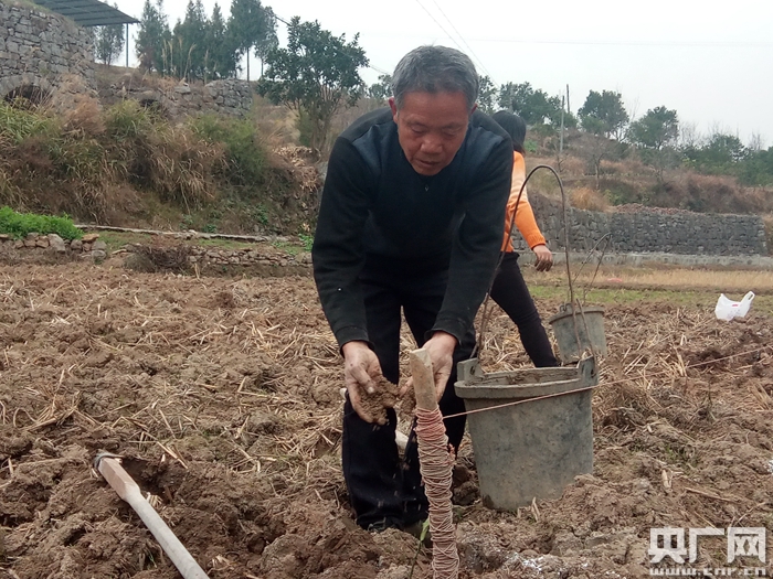 “栽種柑橘苗要選擇好天氣,天氣好再下去的苗成活率就高,如果下雨的話,水分過多苗就會被水泡起,就長得不好,將來的水果質量也不好”。有著多年種植水果經驗的田儒龍說道。