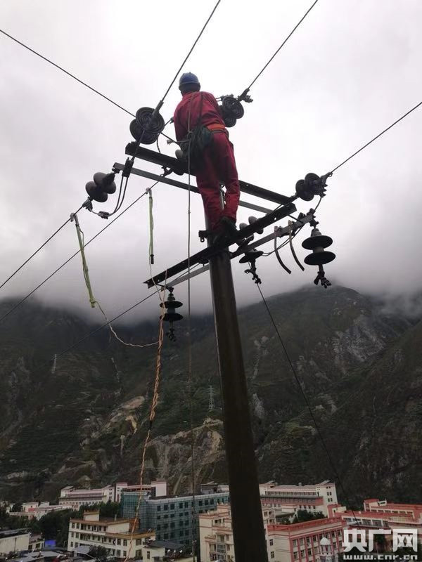 泥石流導致四川汶川2萬多用戶停電,汶川縣城已恢復供電(央廣網發 國網四川電力公司供圖)