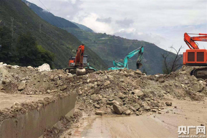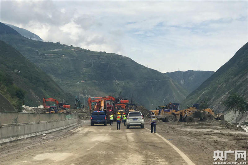 泥石阻斷道路(央廣網(wǎng)記者 賈宜超 攝)