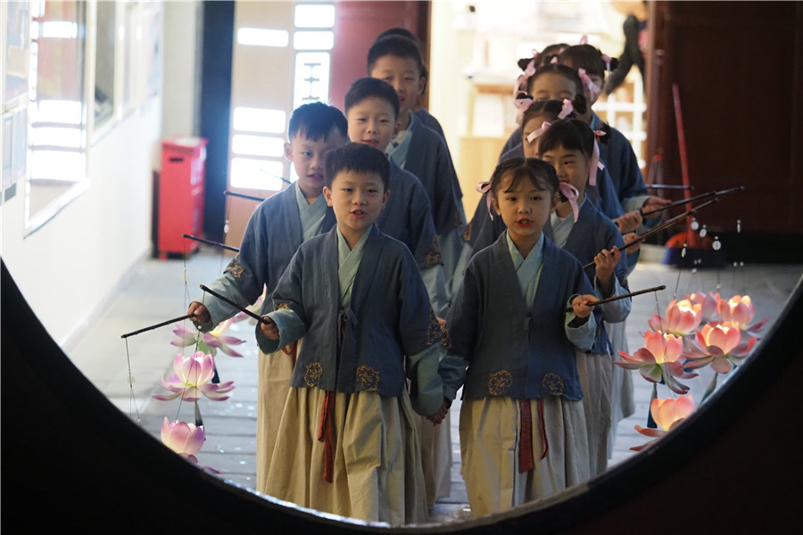 小朋友們手提“荷花燈”(央廣網發 成都武侯祠博物館供圖)