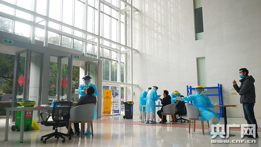 寧波一家地產公司的員工正在做核酸檢測(央廣網記者 杜金明 攝)