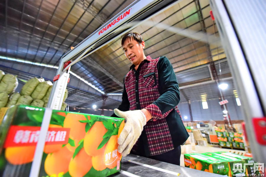 給臍橙打包封箱(央廣網發 通訊員供圖)