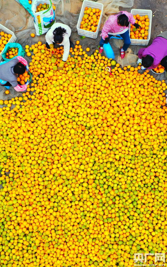果農分揀臍橙(央廣網發 通訊員供圖)