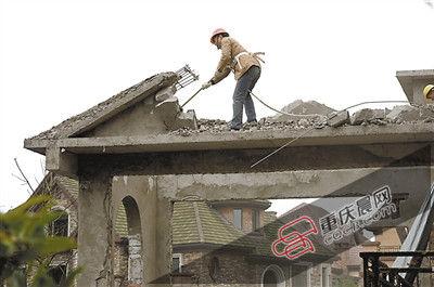 昨天,江北區開展違法建筑集中整治行動,執法人員對太陽海岸別墅區違法建筑進行強拆。重慶晨報記者 胡杰 攝