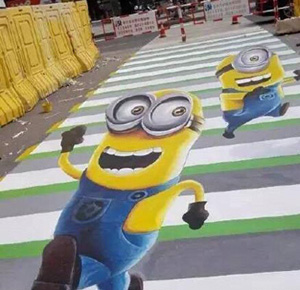 僅從藝術角度,將小黃人、熊大、熊二、光頭強等立體卡通人物搬上“3D斑馬線”,確實令人賞心悅目,就像四川美術學院兩旁的建筑物墻壁全涂上美術作品,讓人仿佛進入藝術隧道,成為城市一景。具體到斑馬線這一特殊載體,需要回答:斑馬線的主要功能是什么?毫無疑問,斑馬線為行人安全而設,旨在提醒司機減速通過,禮讓行人!3D”究竟是有益還是有損于這一功能?那就比較復雜了,具體問題要具體分析。