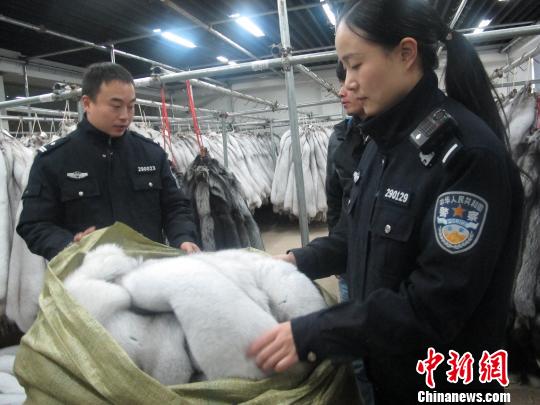 海關緝私警察在廠房內查獲尚未銷售的走私狐皮 俞晶 攝