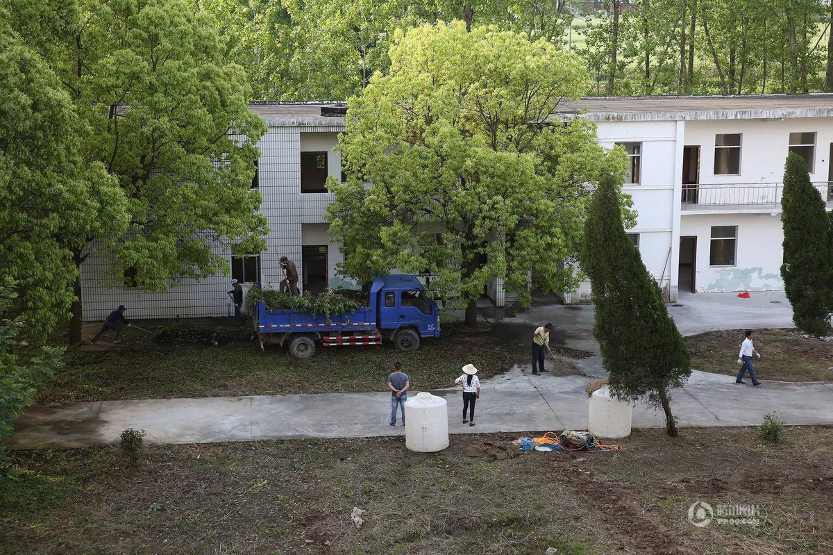 4年前,安慶市大觀區?阪偼顿Y百萬元,將兩所校舍改建成敬老院,然而竣工當日便關門,棄之不用了,如今兩所敬老院門殘窗破,一片破敗景象。該鎮政府接受記者采訪時表示,這是“壓下來的民生工程”,棄用是為了節約,因為當地還有一所大型敬老院,有不少空床位。圖為被媒體曝光后,大觀區?阪傉畬蠢显涵h境進行清理。