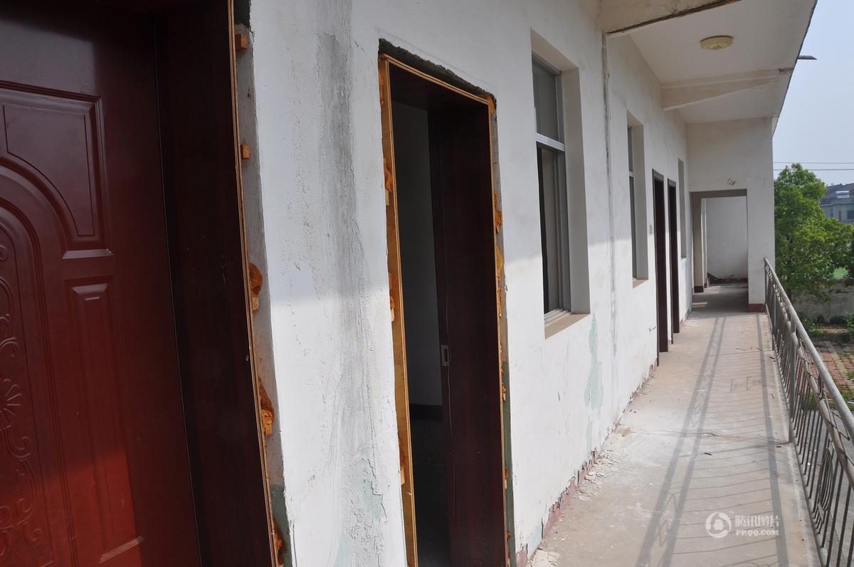 院里雜草叢生,空無一人,兩邊各有一棟兩層樓房,包括廚房和活動室共40間房,房間都鋪了地磚,裝了防盜門和吊扇,可惜的是幾乎所有房間都沒了窗戶,防盜門也是破損的!皬奈醋∵^人,搞糟了!备浇晃环N菜的村民說,敬老院大概三年前建成,花了不少錢,裝修好后就關了門。