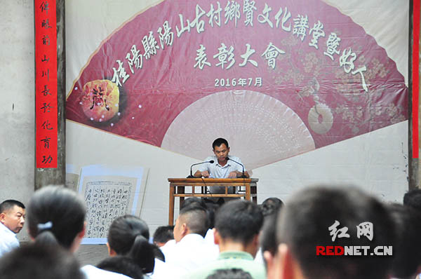 紅網長沙7月14日訊(時刻新聞記者 李慧 通訊員 夏太鵬)7月14日,在湖南郴州桂陽縣正和鎮陽山古村鄉賢文化教育基地,一場別開生面的鄉賢文化講堂暨好人表彰活動舉行,吸引了陽山古村及周邊村莊上百名村民到場。