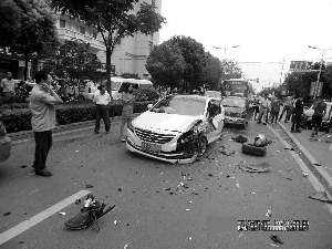 據 句容交警大隊介紹,事發時,孔某(男,48歲,句容人)駕駛黑色大眾小轎車,沿句容市區文昌東路由西向東的方向行駛至事發路段時,突然駛入道路左側并越過 中心線,與對面正常交會行駛的白色現代小型轎車碰撞并反彈波及其他車輛,共造成4輛小車受損(其中兩車受損嚴重)、2名駕駛人受輕傷。隨后,孔某趁現場人 多雜亂,棄車離開。