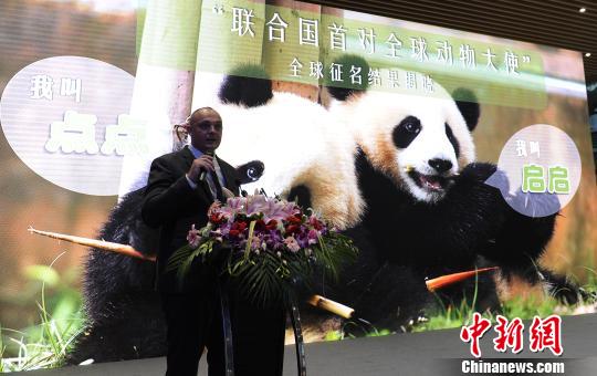 當天,聯合國開發計劃署駐華代表處助理國別主任NielsKnudsen宣布了“聯合國開發計劃署全球首對動物大使”的名字為啟啟(Qiqi)、點點(Diandian)。這對名字不僅寓意著它們所代言的“17個聯合國可持續發展目標”(SDG)在全球推廣的新起點,也意味著聯合國開發計劃署與成都市、成都熊貓基地合作的新起點。