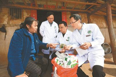 遂寧市中心醫(yī)院“精準(zhǔn)扶貧”送醫(yī)下鄉(xiāng)小分隊(duì)的外科專家來到蓬溪縣黃泥鄉(xiāng)高巖村,為當(dāng)?shù)厝罕婇_展免費(fèi)健康服務(wù)。圖為醫(yī)院專家正在給村民義診。 本報(bào)特約通訊員 鐘敏 攝(視覺四川)