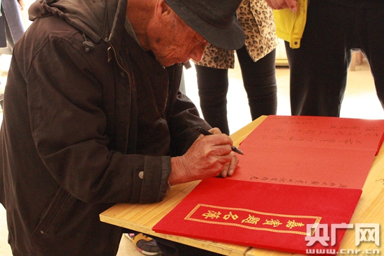 周明漢寫下對于淮北大鼓未來發展的希冀(央廣網記者 孫永政 攝)