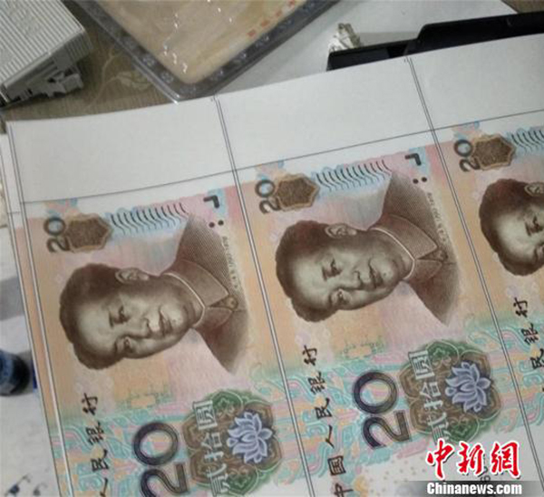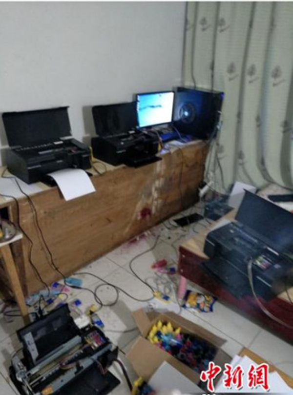 警方突擊檢查,查獲用于印制假鈔的部分設(shè)備。