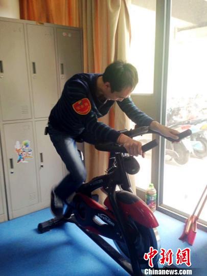 圖為一名車長通過快速騎單車釋放壓力。 王秋蘭 攝