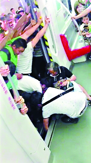 “一二三!一二三!”團結(jié)就是力量,越來越多乘客加入推地鐵的行列,在眾人的吶喊聲中,過百噸重的地鐵終于被推開足夠的空間,女乘客的右腿被成功拉出,前后不過五分鐘。