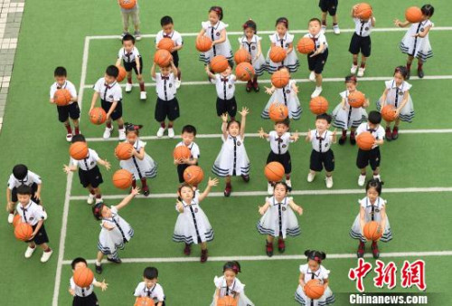 資料圖:幼兒園小朋友進行花樣拍籃球彩排演練 卓忠偉 攝