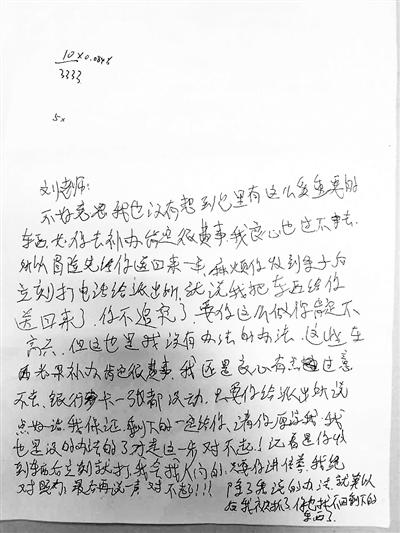 嫌疑人寫給失主的信。 本報記者 雷鍵 通訊員 劉井發 攝