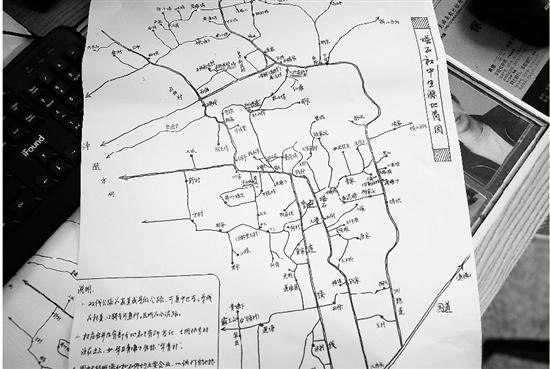這些天,作為手繪家訪地圖的作者,藍松林像一本活的百度詞典,接受著老師們的咨詢。