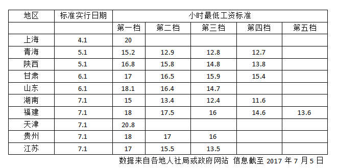 經(jīng)過今年上半年的調(diào)整后,上海、天津的月最低工資標(biāo)準(zhǔn)超過了2000元大關(guān)。其中上海月最低工資標(biāo)準(zhǔn)2300元,為全國最高;天津月最低工資標(biāo)準(zhǔn)今年是首次突破2000大關(guān),達(dá)到2050元。