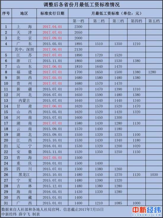 原標題:31省市最低工資排名:上海第一 廣西墊底