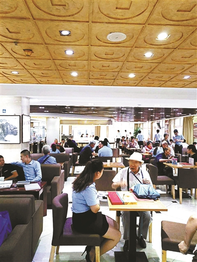 粗略統計,不少于百人在大廳活動,投資人和銷售員各占一半,每張圓桌旁都是一位老人,一位銷售。
