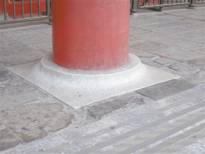 故宮古建筑的隔震是如何實現的呢?周乾舉例解釋道,比如建筑的柱根并非插入地底下,而是平擺浮擱在柱頂石上。地震作用下,柱根在柱頂石上往復運動,產生摩擦滑移隔震效果。