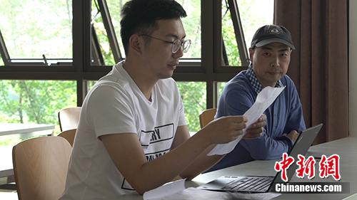 張越舟(右)在騰訊解說管理進行高校招募的現場。受訪者供圖