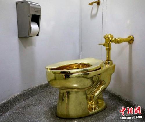 據報道,這個金馬桶是意大利藝術家卡泰蘭(Maurizio Cattelan)的作品,命名為“亞美利加”(America),可以正常使用與沖水。