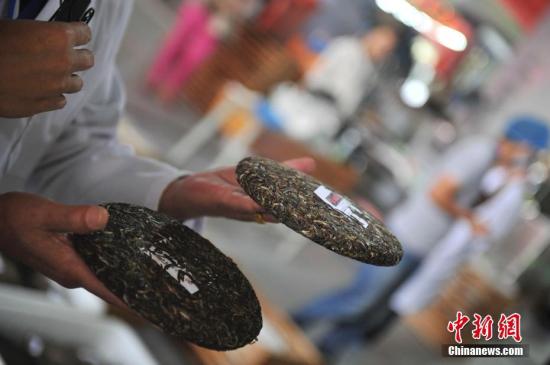 資料圖:壓好的普洱茶餅。中新社記者 劉冉陽 攝