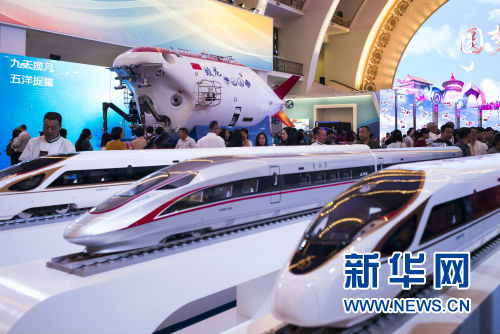 9月28日,觀眾在展覽現場參觀。在北京展覽館舉行的“砥礪奮進的五年”大型成就展9月26日起正式向公眾開放。大型成就展充分運用圖片、文字、視頻、實物、模型、互動體驗等多種展示手段和元素進行展示與呈現,吸引眾多參觀者。新華社發(張笑宇攝)