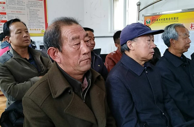 ↑顧家臺村民聚精會神地聆聽習近平同志作報告。記者 李剛 攝