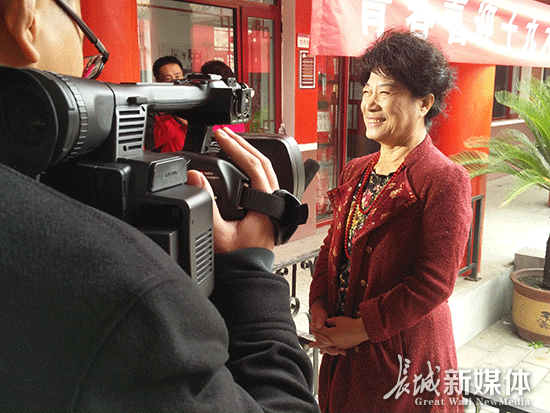 ↑唐山市祥富里社區居民王素珍接受長城新媒體記者采訪。記者 閆航 攝