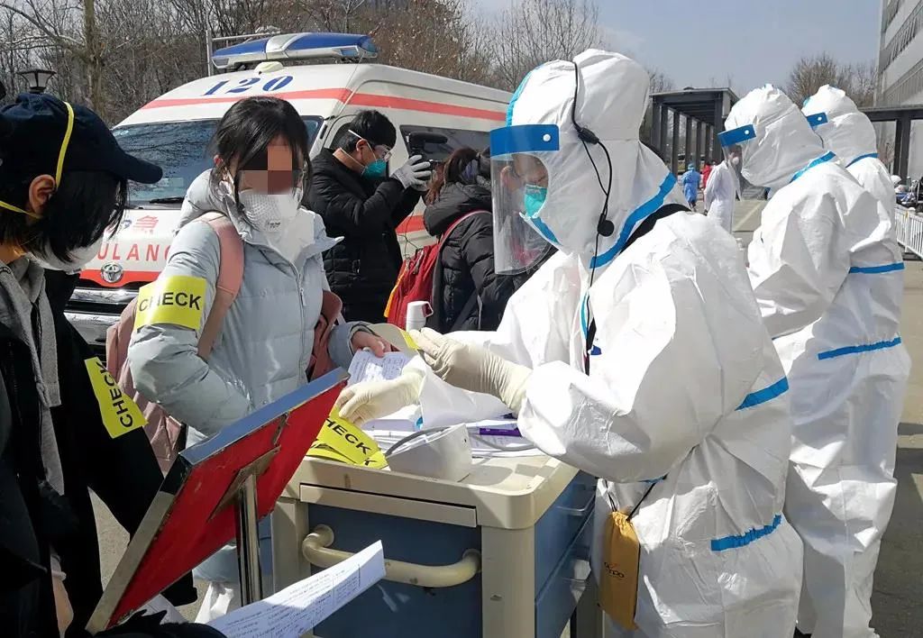 120急救車將有發熱、咳嗽等不適癥狀的機場入境人員運到地壇醫院,接受排查