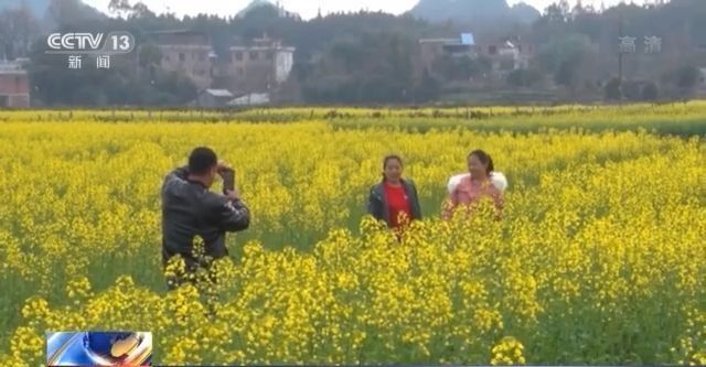 連日來,廣西全州縣種植的15萬畝油菜花競相開放,盛開的油菜花金黃一片,與村莊、青山相互映襯,成了初春一道亮麗的風(fēng)景。油菜花海中,花開正艷,蜂飛蝶舞,游客漫步在田間小道,放飛心情,感受春天的舒適和愜意。